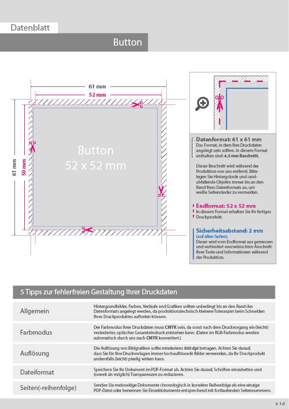 Hochwertiger Ansteckbutton 5,2 x 5,2 cm, 4/0 farbig einseitig bedruckt